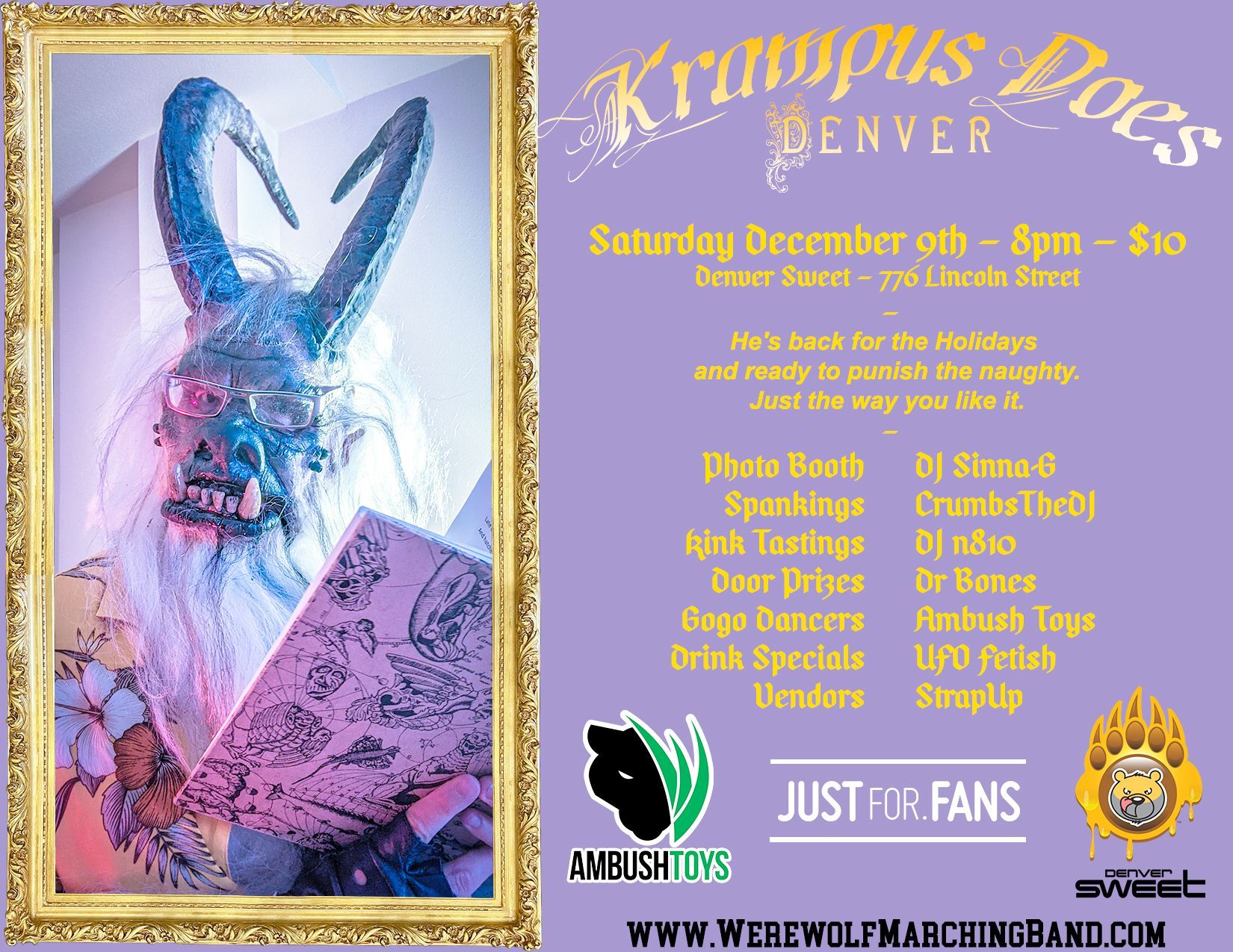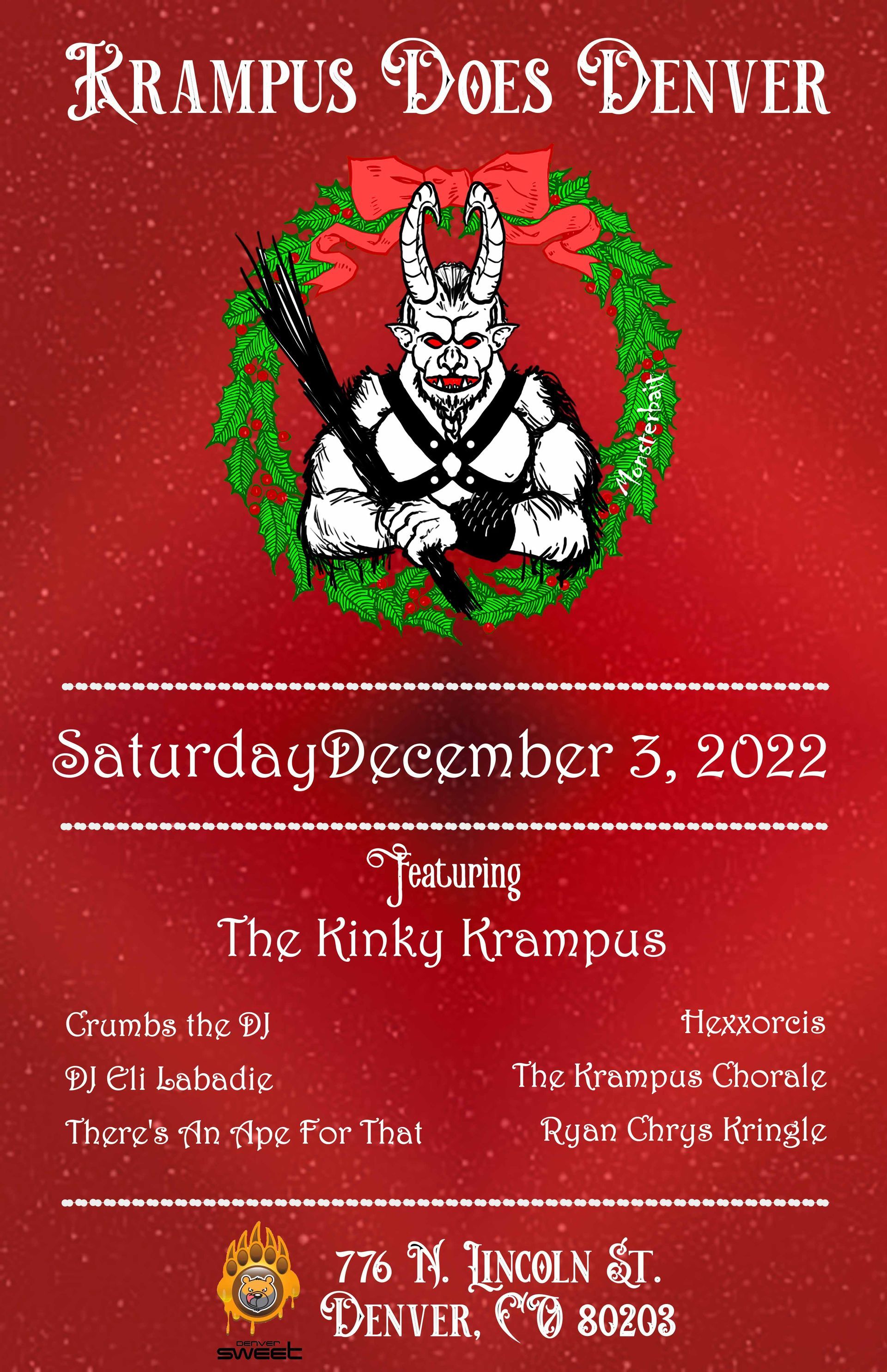 Krampus Does Denver is a celebration of the naughtiness of the previous year. He brings his own personal chorale to add to the festive party atmosphere. And, of course, appropriate punishments are doled out...